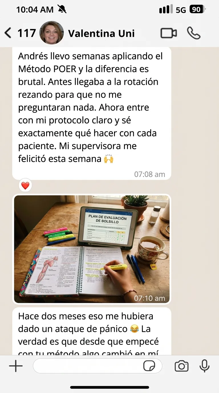 Las clases me llenaban de teoría, practicaba sin criterio claro, me quedaba en blanco frente al paciente… hasta que diseñé el Método P. O. E. R, un protocolo paso a paso que me permitió dominar la evaluación muscular desde cero y aplicarlo en cada rotación hospitalaria con total seguridad y sin miedo a equivocarme.